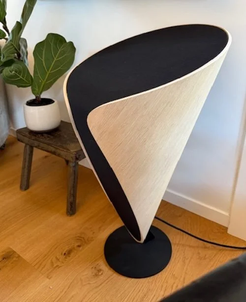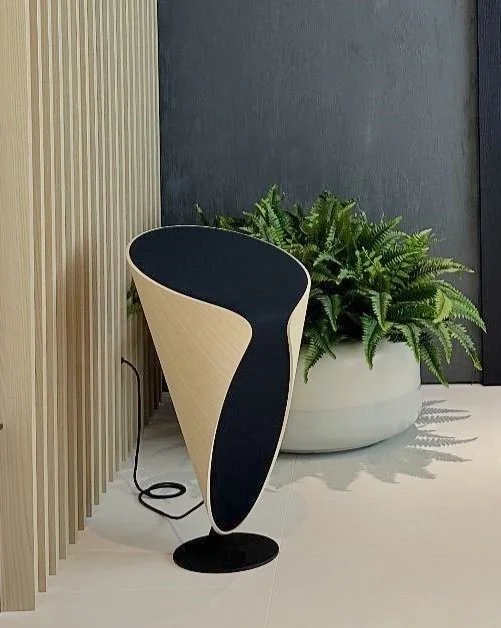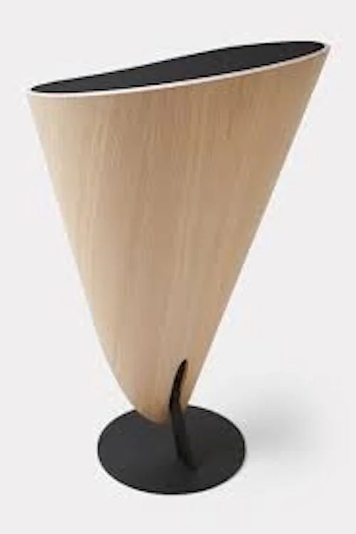 Curved plywood from Sweden, a contemporary one piece cone shaped cabinet.